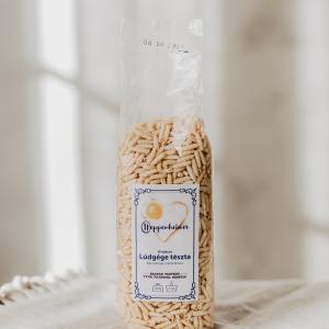 GMO mentes gazdságból származó, szabadtartású tyúk tojásából készült lúdgége tészta.
