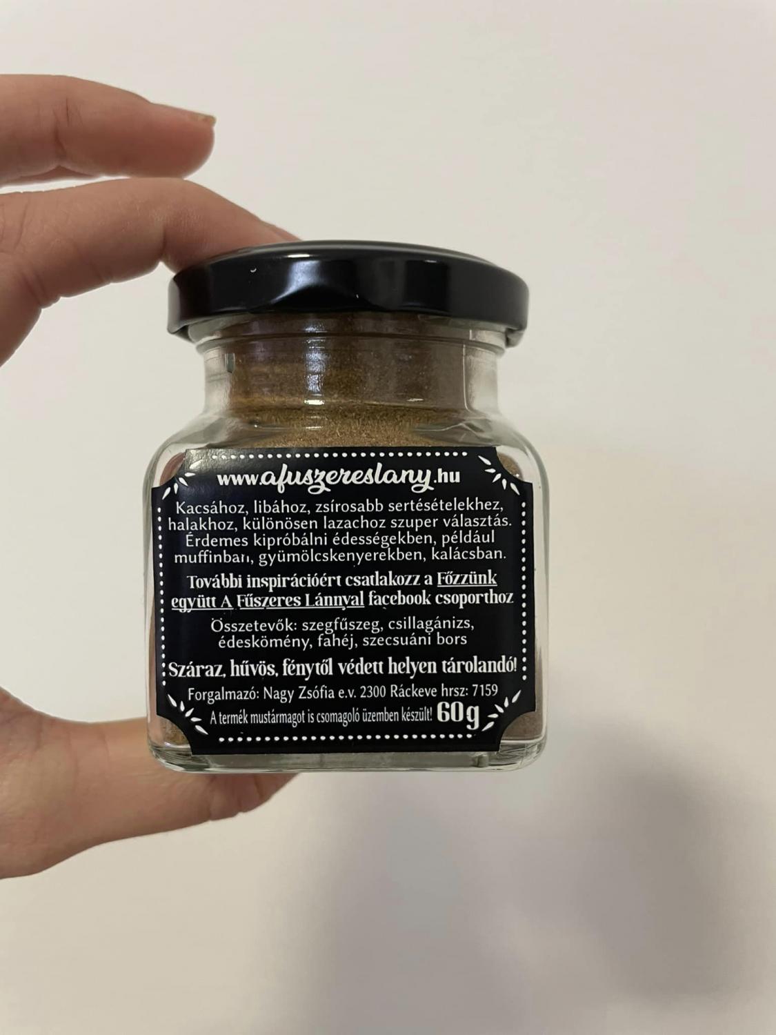 Összetevők: szegfűszeg, csillagánizs, édeskömény, fahéj, szecsuáni bors.