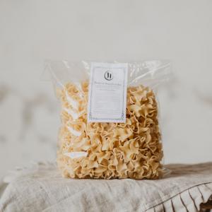 A fodros nagykocka tészta a klasszikus magyar konyha elengedhetetlen alapanyaga. Tésztánk kizárólag szabadtartású tyúkjaink „kapirgálós” friss tojásából és gondosan válogatott lisztből készül. Így lesz minden falat telt, gazdag és igazi házias ízvilágú.